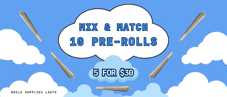 While supplies last, choose between select 1g Select pre-rolls to mix or match 5 for $30! Discount will be applied in store.