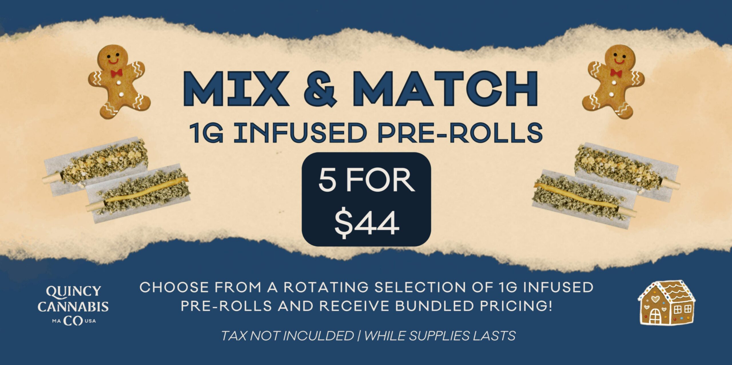While supplies last, enjoy mixing or matching 5 of the qualifying infused pre-rolls for $44! Discount will be applied in store! Available on a rotating basis.