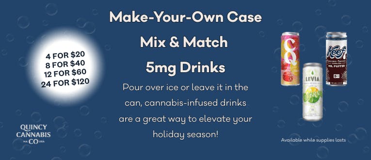 Mix & Match Drinks: Case for $120 While Supplies last, enjoy mixing or matching 24 Cannabis drinks for $120. Discount will be applied in store Shop Now ⭢